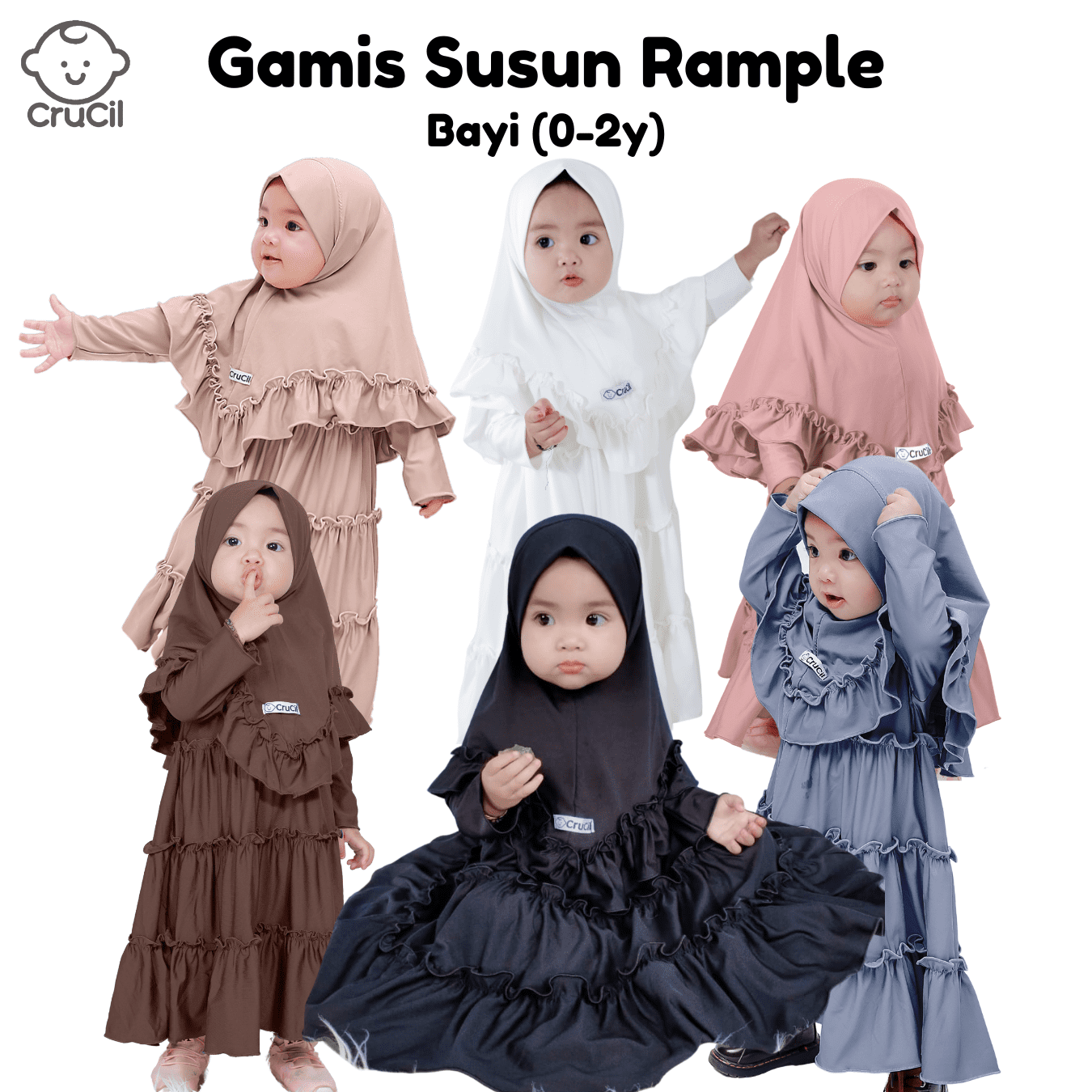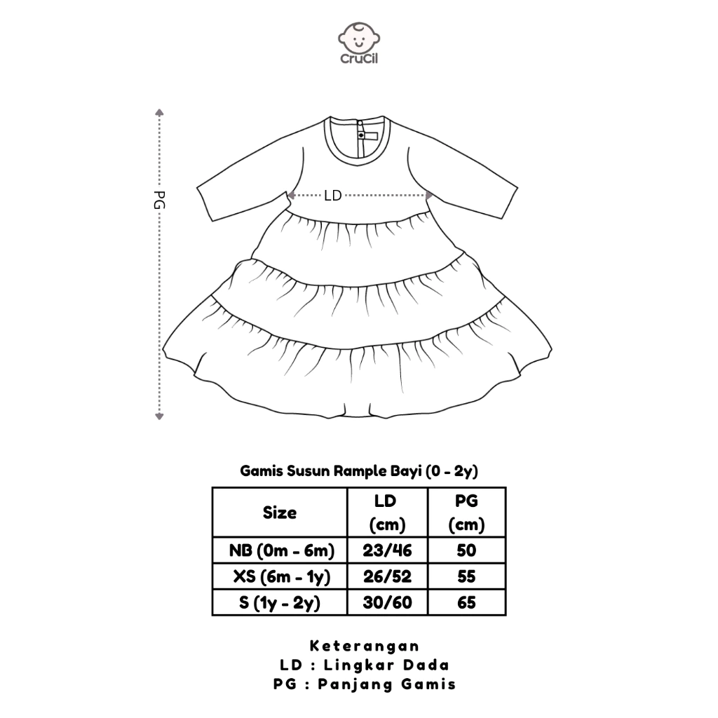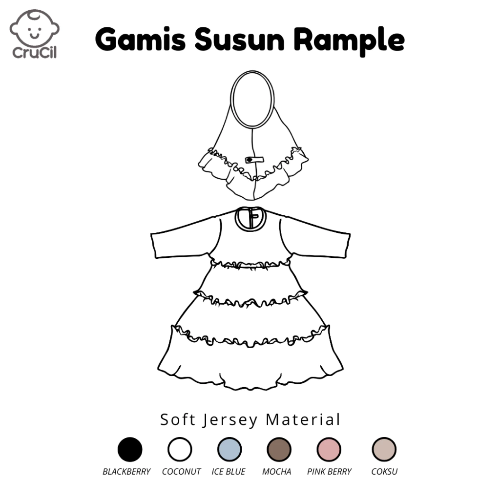 *Bagian Gamis bawah terdapat 3 tumpuk rample jahitan rample luar dengan pinggiran kril/nechi full melingkar sampai belakang.