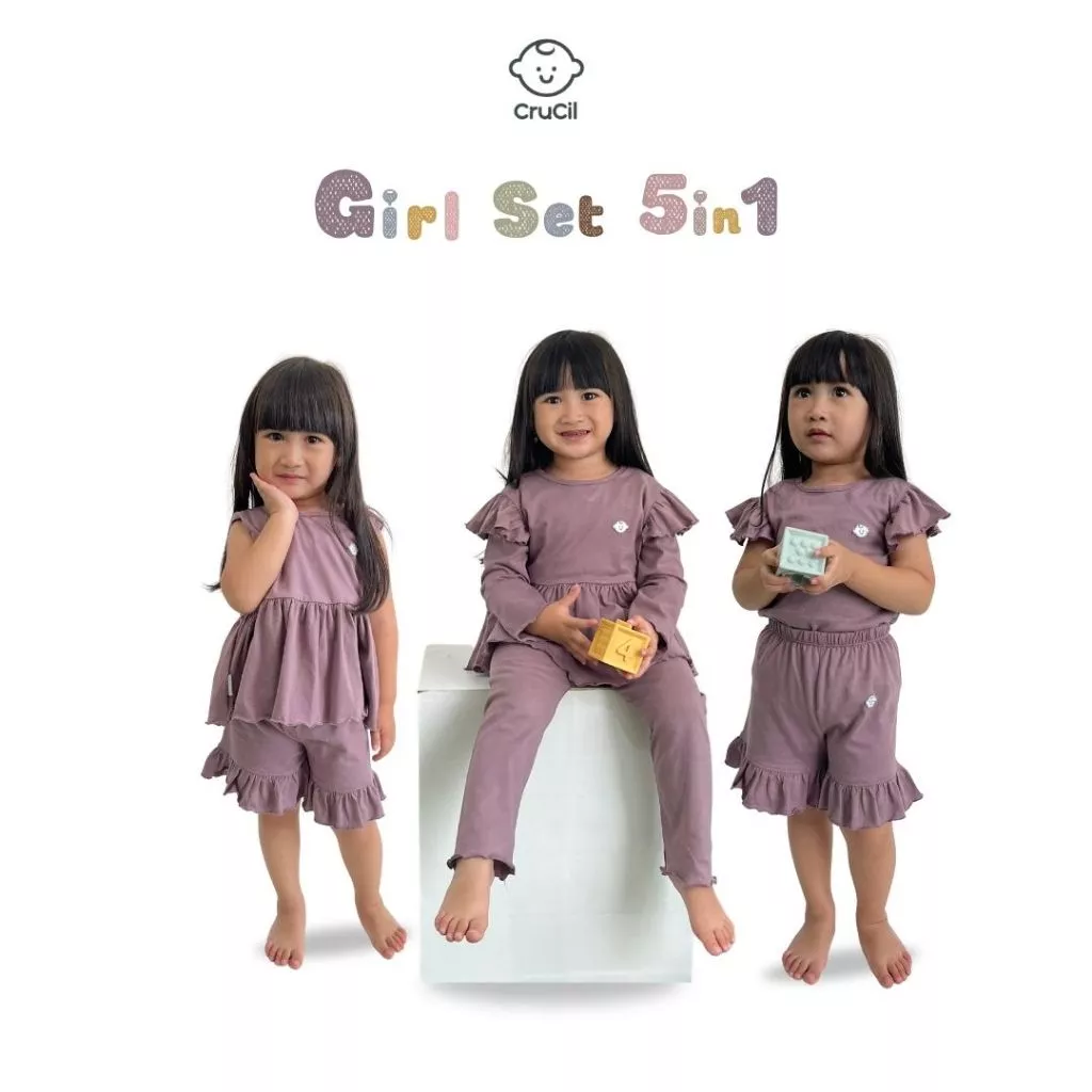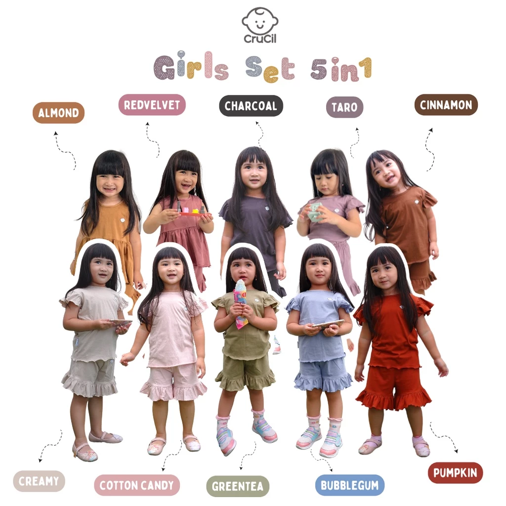 CruCil Factory Baju Kaos Anak Basic Set Girls 5in1 (6m – 8y)