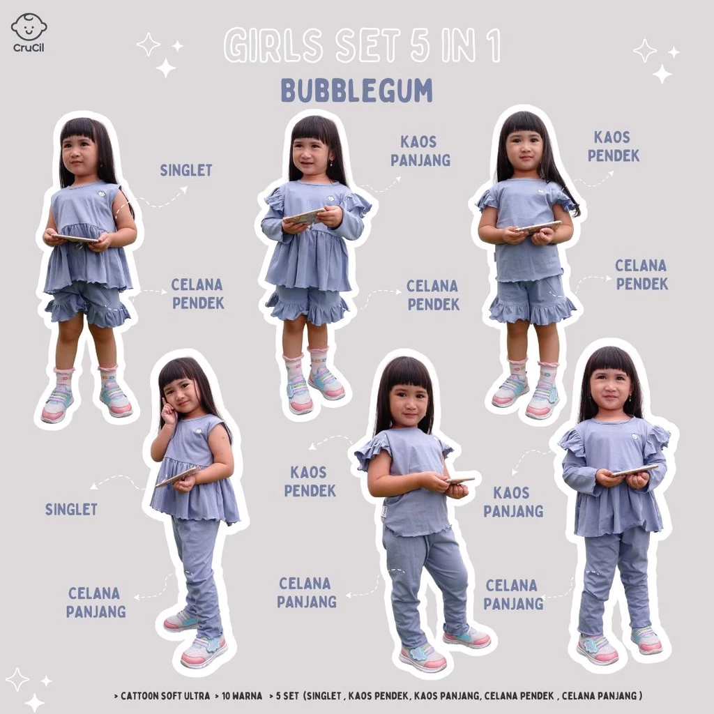 “CruCil baju anak kaos paket lengkap 5in1 girls set terbuat dari bahan cotton soft ultra yang lembut, halus, nyaman dipakai, menyerap keringat, dan tidak membuat iritasi. Didesain khusus untuk anak perempuan